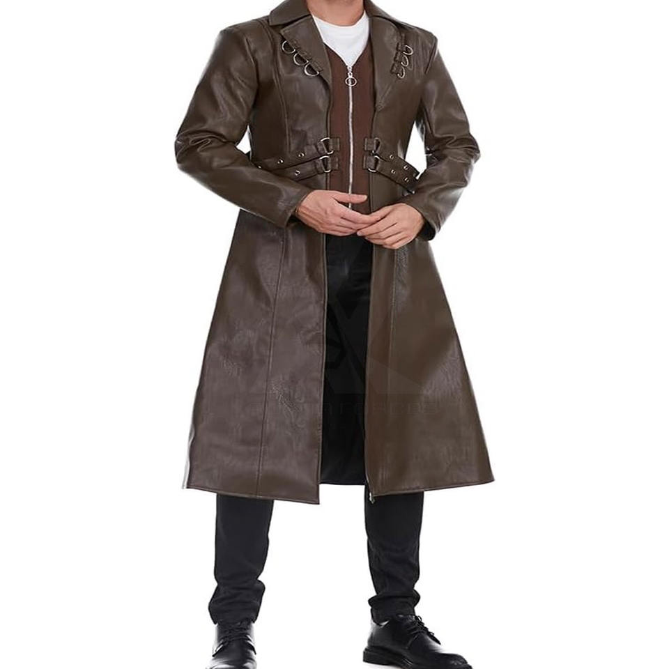 เสื้อโค้ทหนังแท้สไตล์วินเทจสำหรับผู้ชาย ขายดี กันน้ำ ระบายอากาศได้ดี สวมใส่สบาย คอปกกลม เหมาะสำหรับฤดูหนาว สไตล์ลำลอง ยาว
