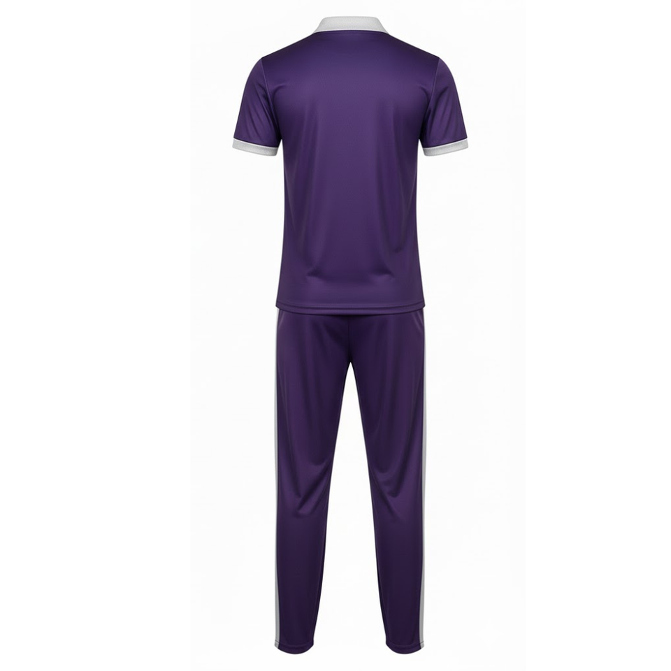 ชุดคริกเก็ตมืออาชีพสำหรับผู้ชายขายดีอันดับต้นๆ | เสื้อเจอร์ซีย์สีม่วงระบายอากาศได้ดีและกางเกงขายาวพร้อมลายกราฟิกไล่เฉดสีกาแล็กซี่