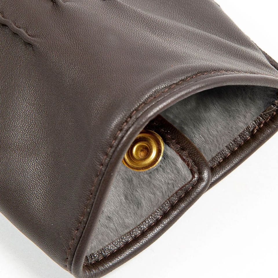 ถุงมือหนังแท้หน้าจอสัมผัสสำหรับผู้ชายถุงมือขับรถให้ความอบอุ่นบุขนแกะในฤดูหนาวมีดีไซน์ข้อมือทันสมัย