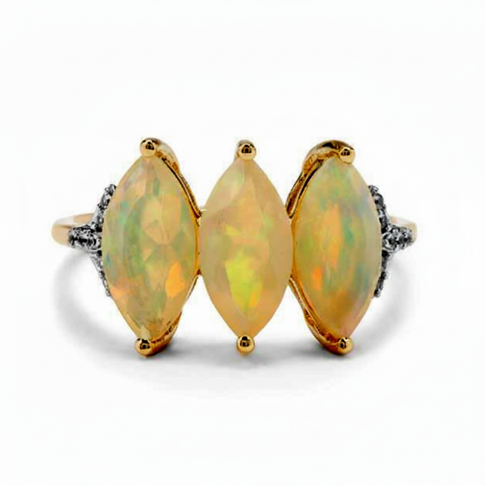 ยอดขายธรรมชาติได้รับการรับรองโอปอลเอธิโอเปียและเพชรสีขาว14พันสีเหลืองเครื่องประดับแหวนทองขายส่งราคาโรงงาน