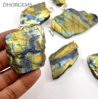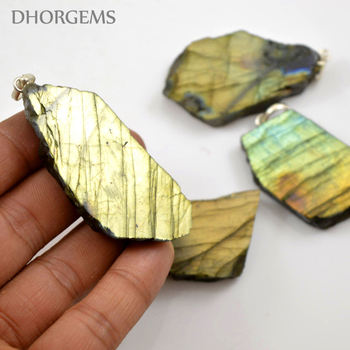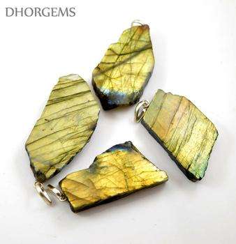 จี้หินลาบราดอไรต์สีเหลืองธรรมชาติขายดีที่สุด ขนาด 1-3 นิ้ว หินดิบสำหรับทำเครื่องประดับ