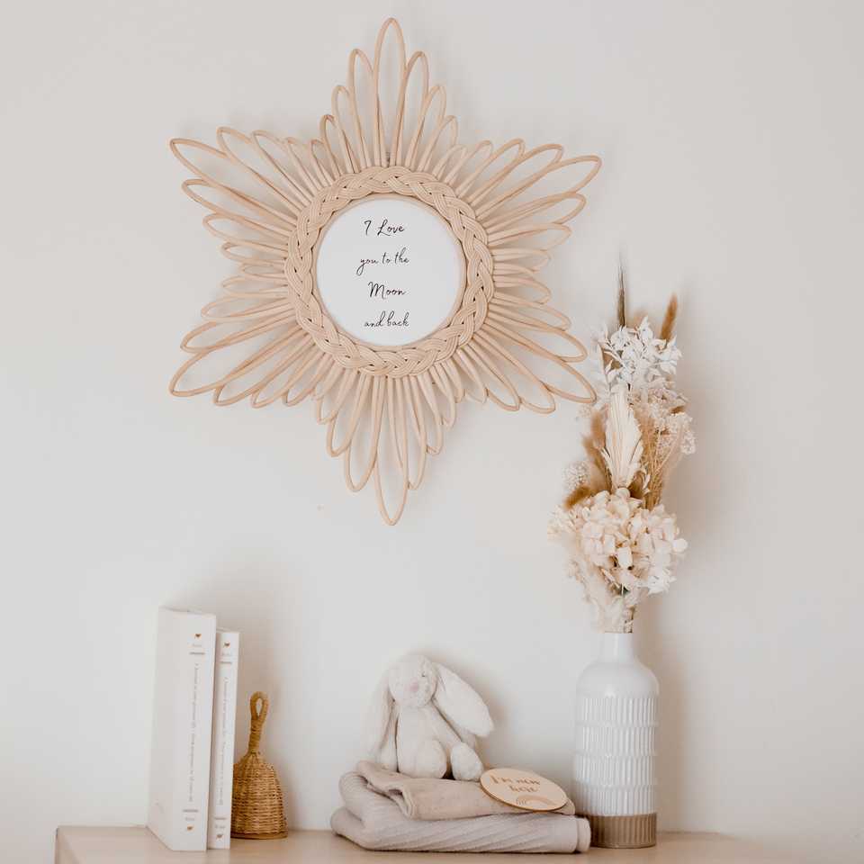 แผ่นป้ายเปล่าสำหรับแขวนติดผนังแผ่นหวายลายดอกไม้ดีไซน์ใหม่สำหรับตกแต่งห้องเด็ก