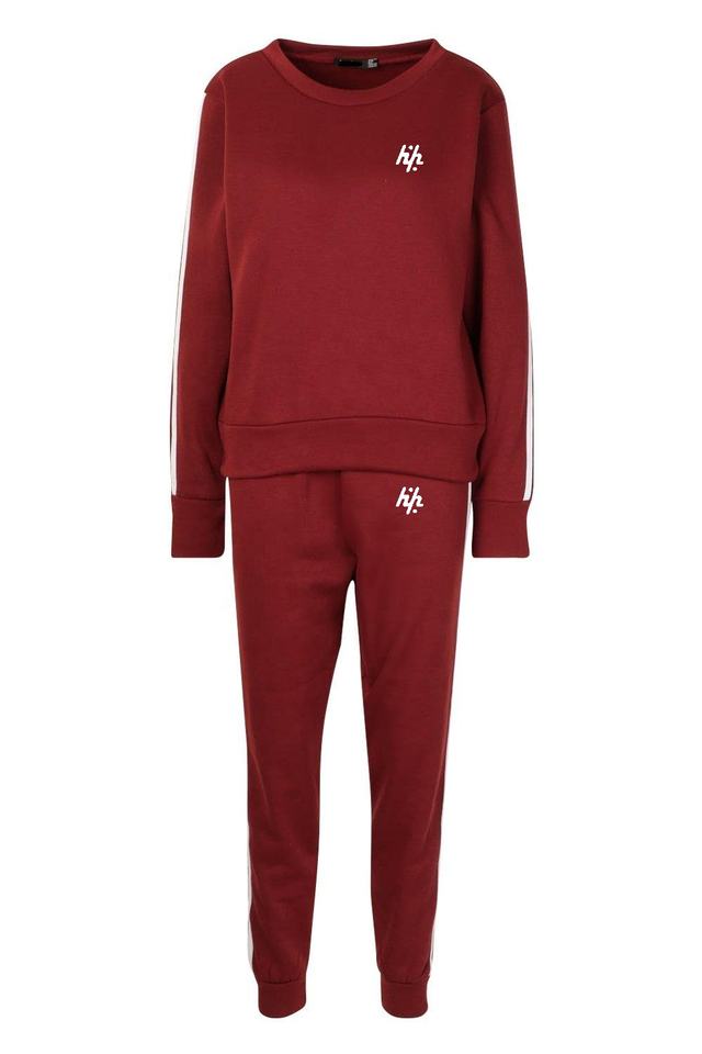 ชุดวอร์มแขนยาวผ้าฟลีซสำหรับผู้หญิงชุดวอร์มสีแดงแถบด้านข้าง