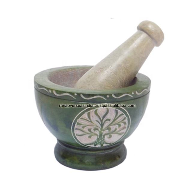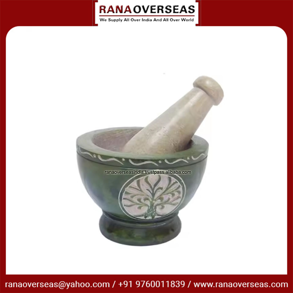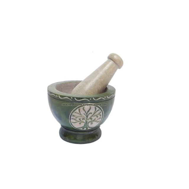 ชุดปูนและลูกกรงหินสบู่ดีไซน์ใหม่ที่มียอดขายสูงสุดพร้อมการแกะสลักต้นไม้สําหรับผงสมุนไพรเครื่องเทศธัญพืชและเมล็ดพืช