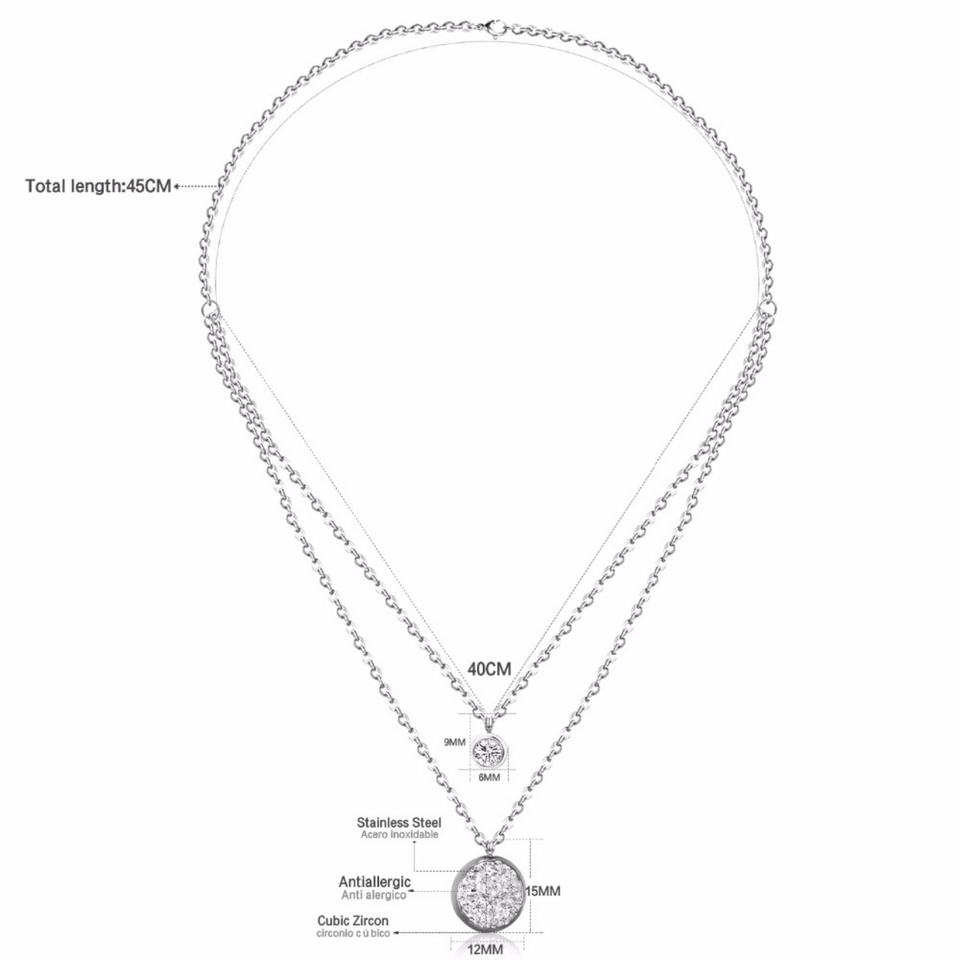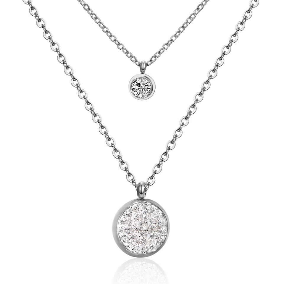 สร้อยคอทองคำชุบ 18K รุ่นใหม่ขายดี ประดับพลอยสีขาวสองชั้น