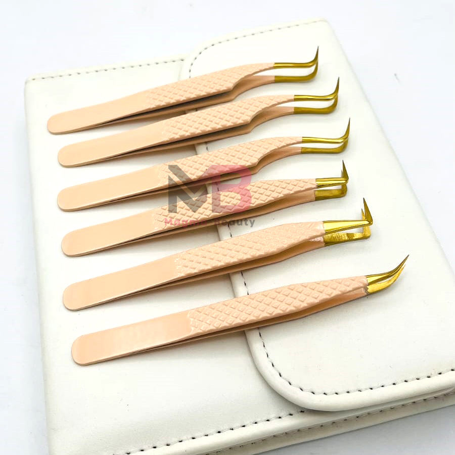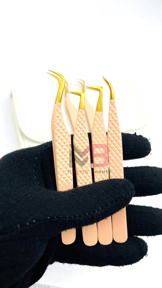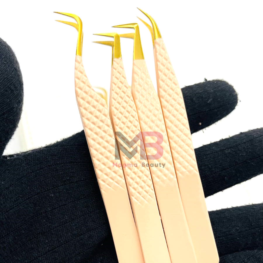 แหนบต่อขนตาสแตนเลสพร้อมชื่อแบรนด์ที่กำหนดเองปลายสีนู้ดเคลือบสีเงินจับเพชร