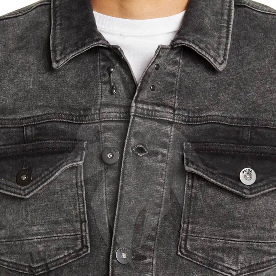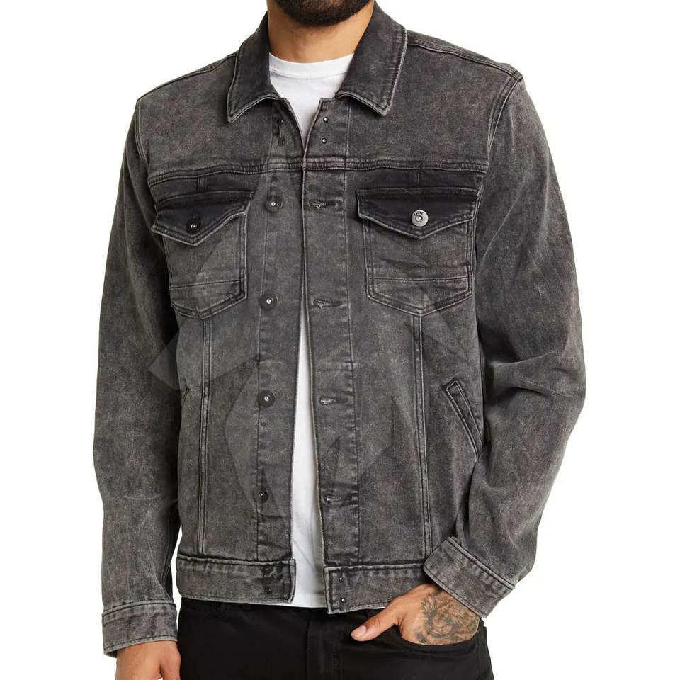 แจ็กเก็ตยีนส์ของผู้ชายโอเวอร์ไซส์ผ้าแคนวาสมีฮู้ดปกเสื้อแบบกำหนดเองผ้าแคนวาสสำหรับธุรกิจผู้ผลิตโดยตรง