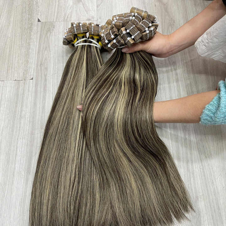 เทปต่อผมสีเปียโนขายดี ผมแท้เวียดนาม แบบ Double Drawn น้ำหนัก 100 กรัมต่อช่อ มีสินค้าพร้อมส่ง