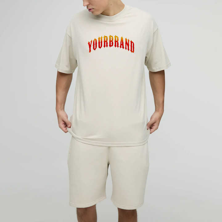 ชุดเซ็ตเสื้อเชิ้ตและกางเกงขาสั้นลำลองไซส์ใหญ่ขายดีสำหรับผู้ชาย สไตล์สตรีทแวร์ พิมพ์ลายโลโก้ตามสั่ง