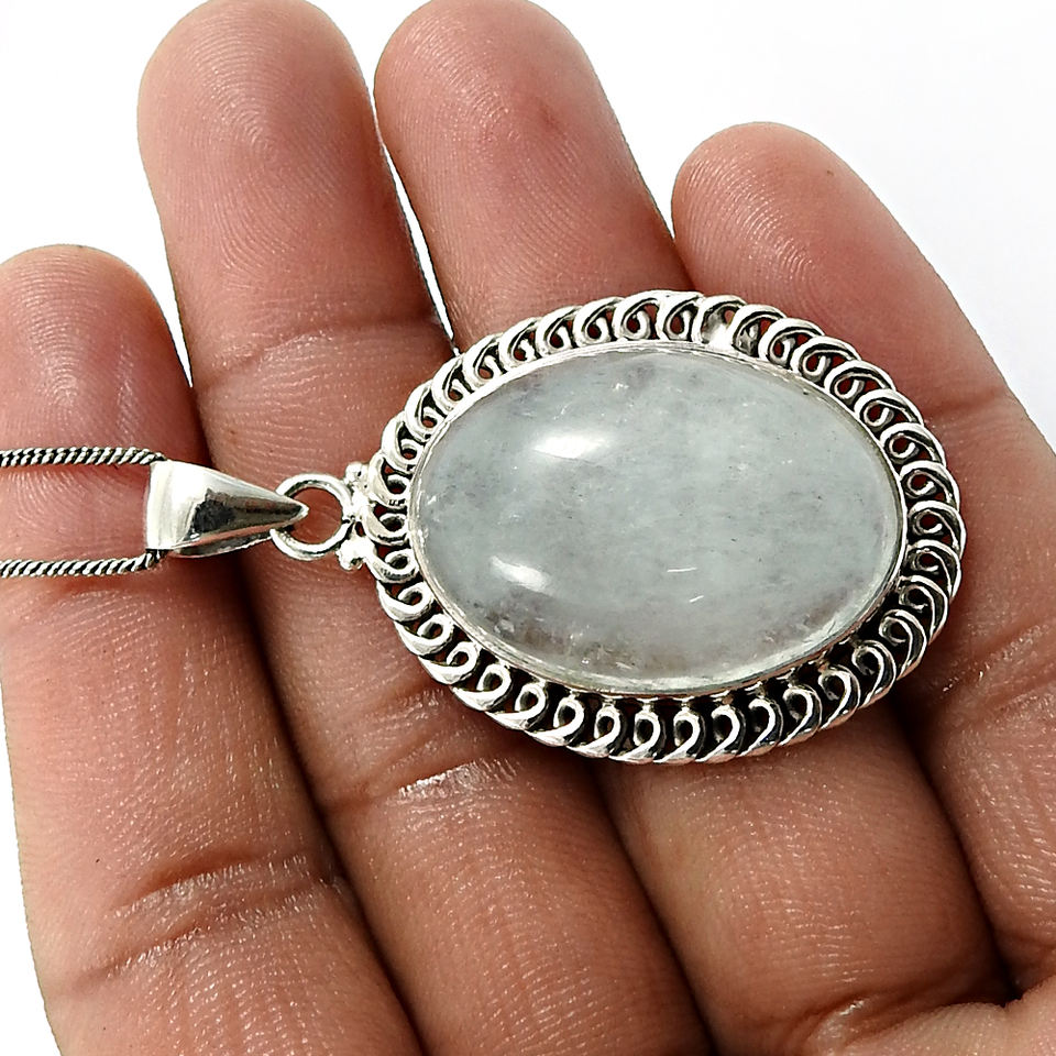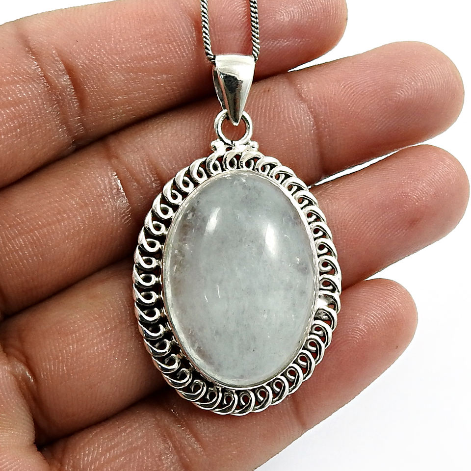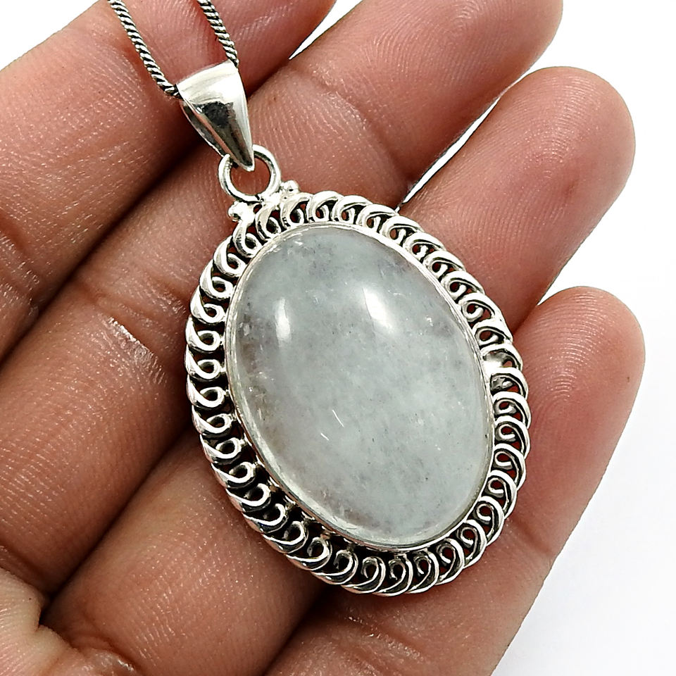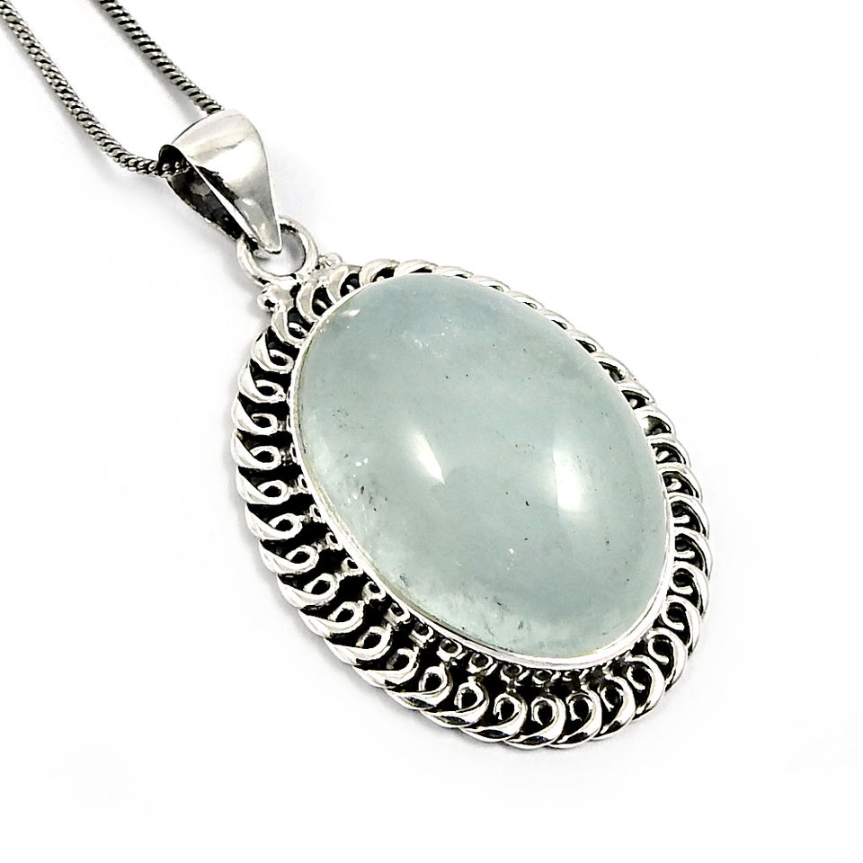 สินค้าขายดี925เงินสเตอร์ลิงอัญมณีอความารีนธรรมชาติจี้รูปวงรีเครื่องประดับงานแฮนด์เมดราคาขายส่ง