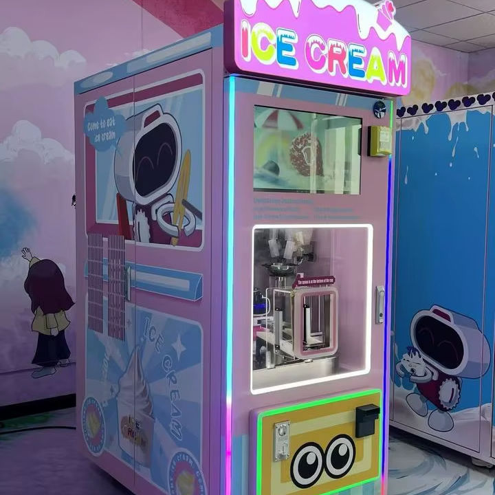 เครื่องจำหน่ายไอศกรีมในตู้เย็นใหม่หลากหลายรสชาติการชำระเงินด้วยบัตรเงินสด