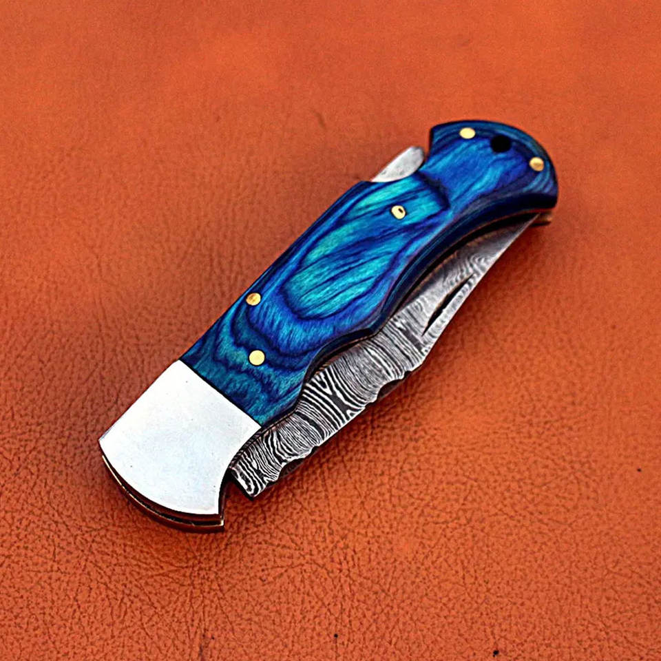 มีดพับเหล็กดามัสกัสพับได้ใบมีดสำหรับใช้กลางแจ้งใช้ล่าสัตว์รับประกัน1ปีด้ามจับสบาย