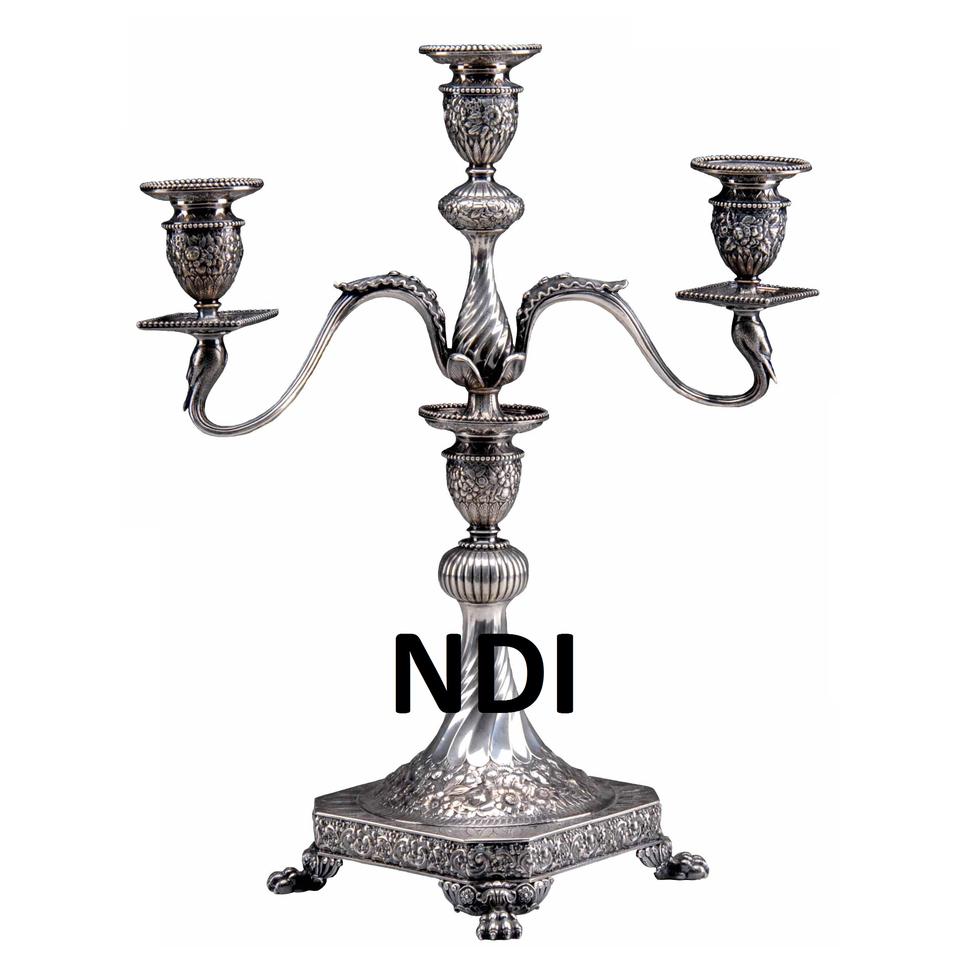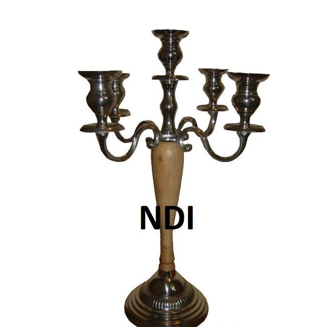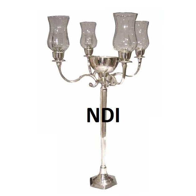 เชิงเทียนโลหะและแก้วแบบ4แขนทำมือของตกแต่งสำหรับงานแต่งงานโรงแรมร้านอาหารชุบนิกเกิลสำเร็จรูป