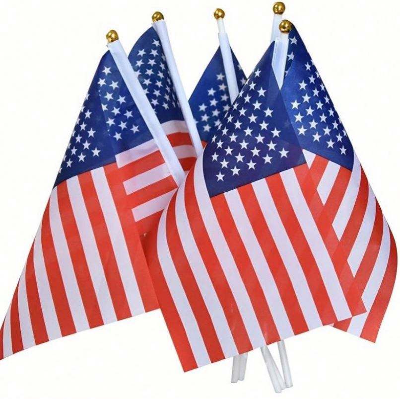 สินค้าขายดี ธงชาติอเมริกาแบบมือถือ ขนาด 14x21 ซม. ผลิตตามสั่ง ทำจากโพลีเอสเตอร์ ธงแบบโบกมือ