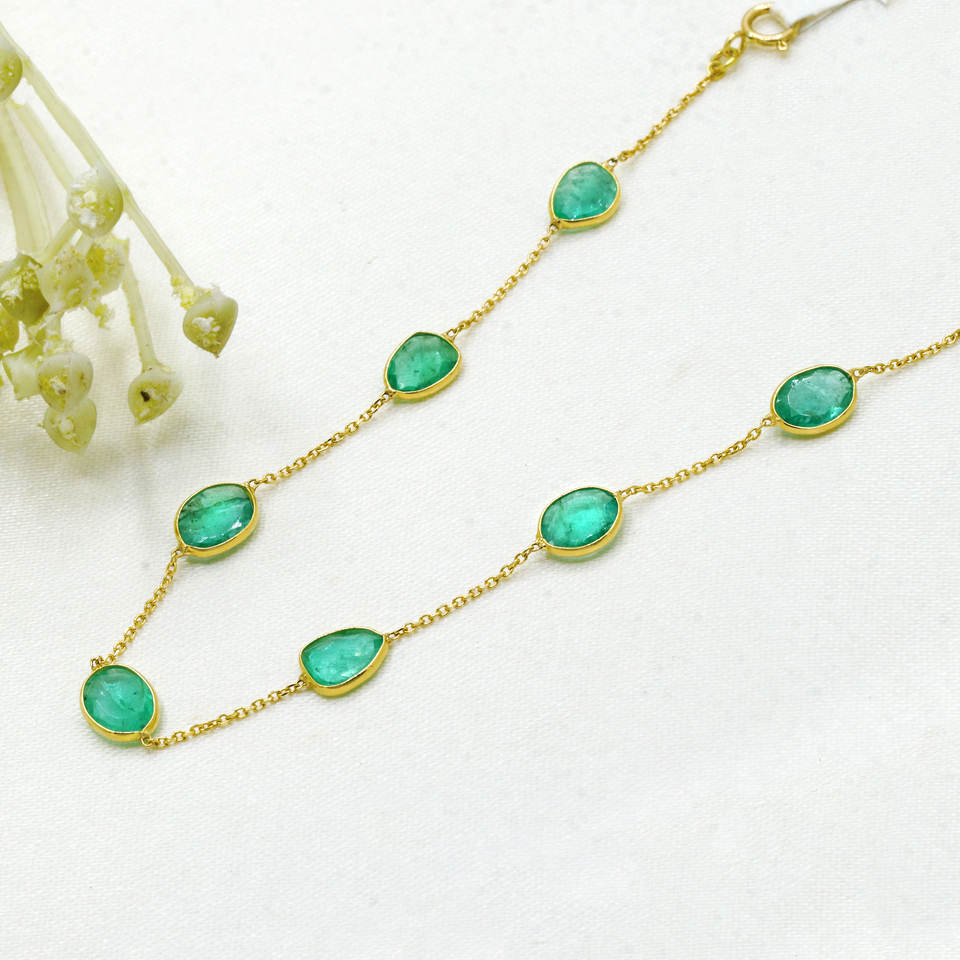 สร้อยข้อมืออัญมณีมรกตธรรมชาติทำด้วยมือทองคำ18K