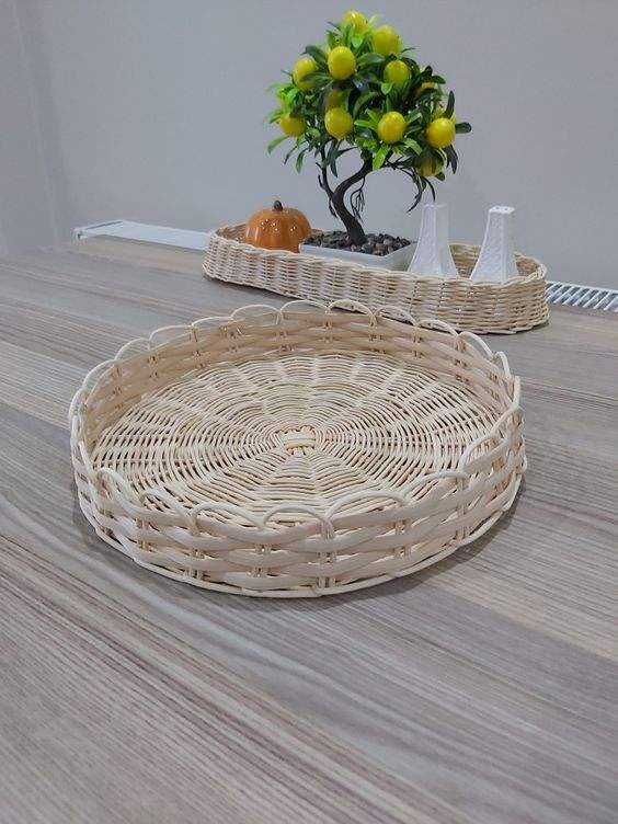 ถาดหวายทรงกลมจานพร้อมจานสำหรับตกแต่งโต๊ะ