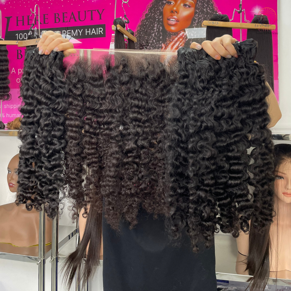 ผมคนดิบที่ยังไม่ผ่านกระบวนการ22นิ้วมัดผมชาวพม่าแบบพรีเมียมผมลอนจากซัพพลายเออร์เวียดนาม