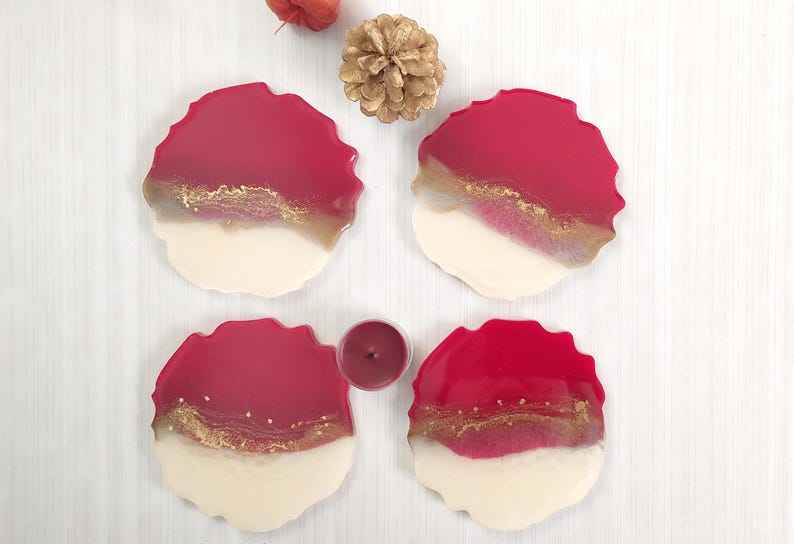 ถาดรองแก้วทำจากยางเรซินงานแฮนด์เมดดีไซน์หรูหราสำหรับบ้านและสำนักงานถาดรองแก้วทำจากหินรูปทรงไม่สม่ำเสมอ2025ป้องกันรอยขีดข่วน