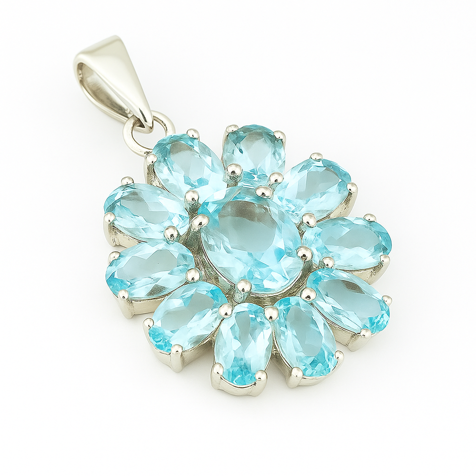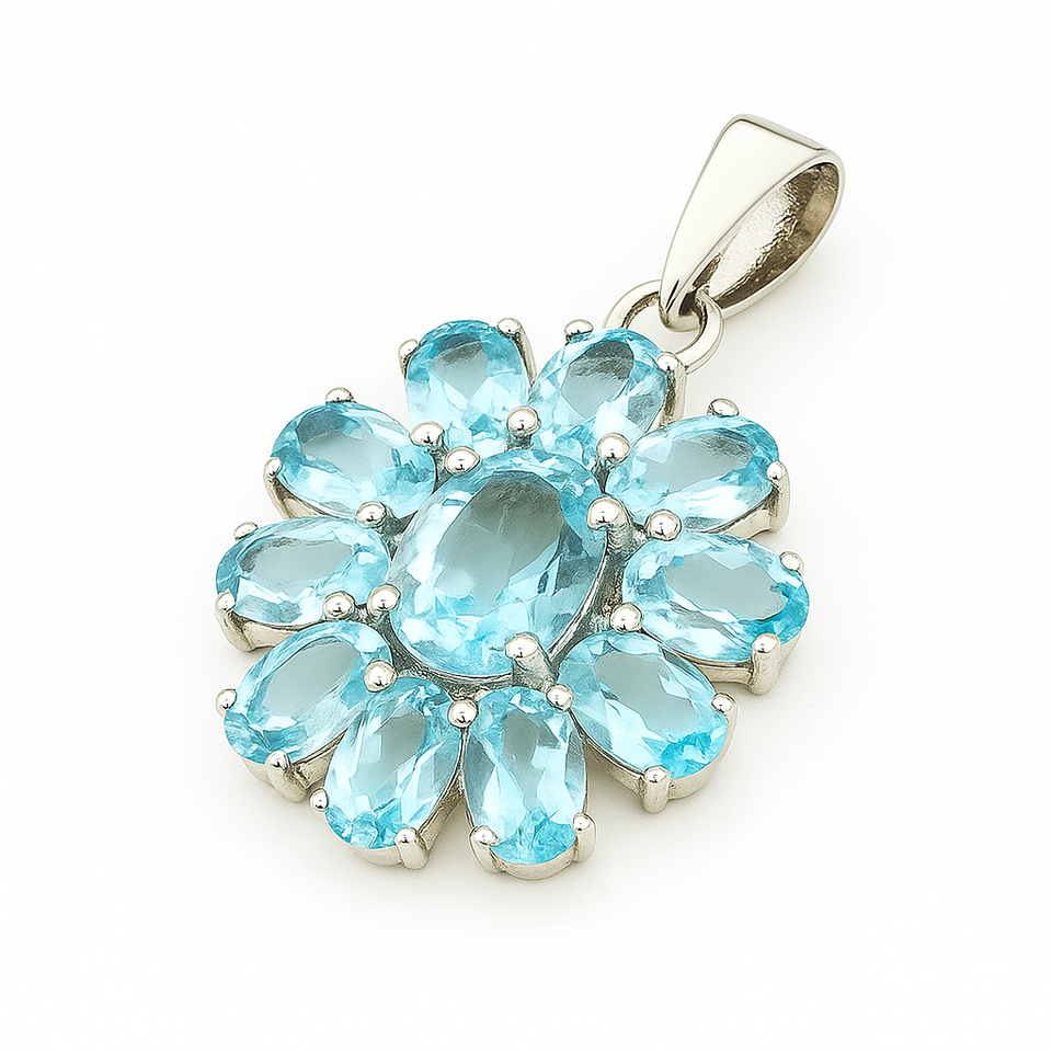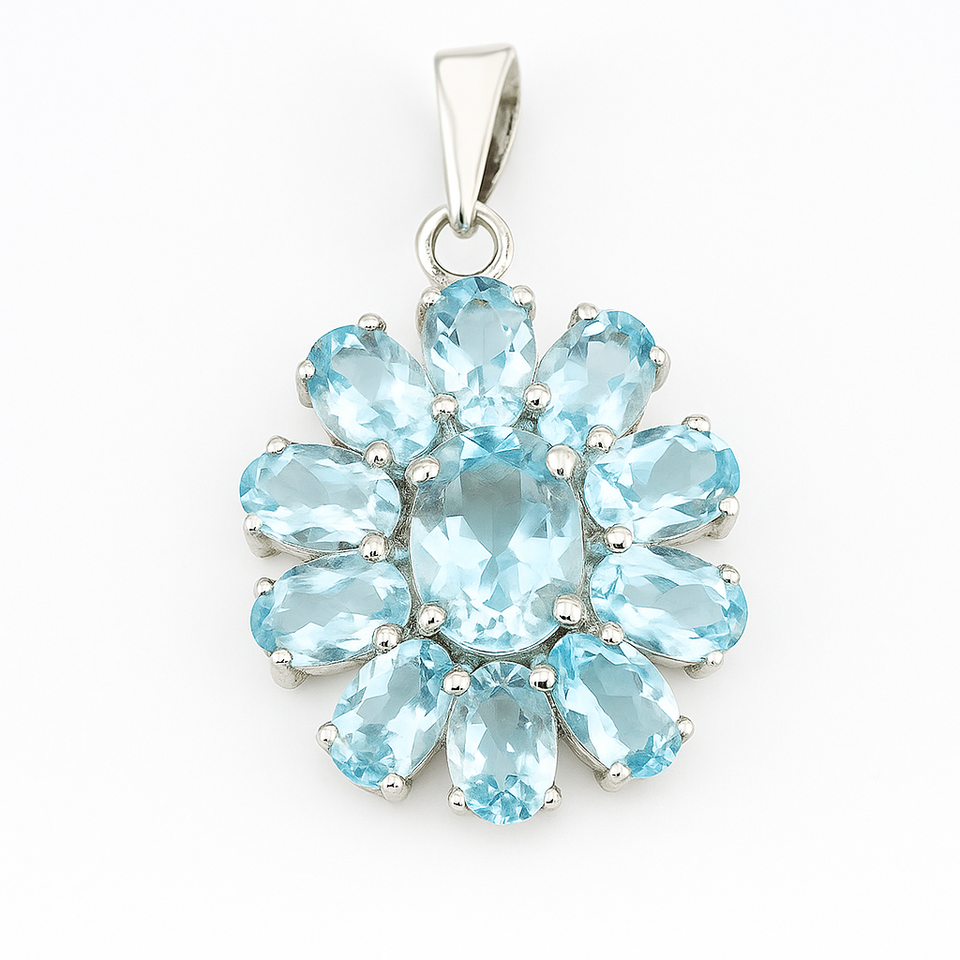 จี้เงินแท้ 925 ชุบโรเดียม ประดับบลูโทแพซ ดีไซน์มินิมอลรูปวงรี ประดับดอกไม้ ราคาขายส่ง