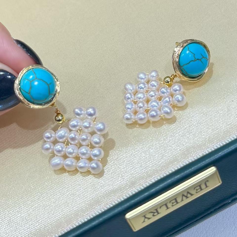 Top Selling S925 Fine Dangle Earrings Retro Hollowed Out Pearl with Tree Leaves Natural Freshwater Heart-Shaped Jewelry