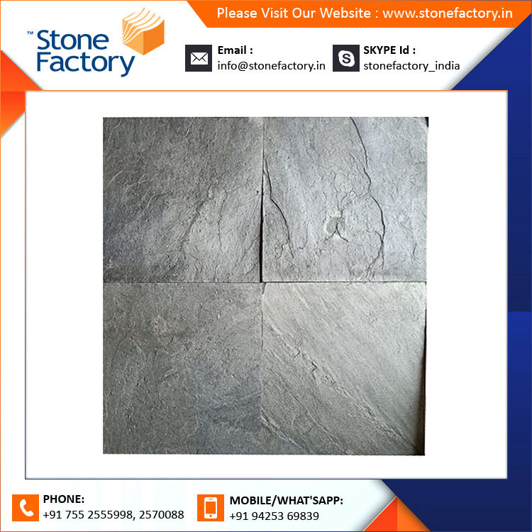 กระเบื้องหินทรายหินชนวนธรรมชาติสีเขียวมหาสมุทรพร้อมเปลวไฟและพื้นผิวขัดเงาสำหรับปูพื้นกลางแจ้ง