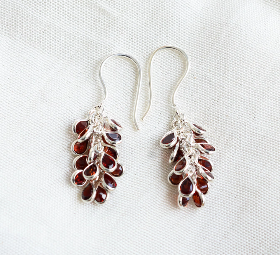ต่างหูระย้าทรงหยดน้ำ สีแดงเลือดนก