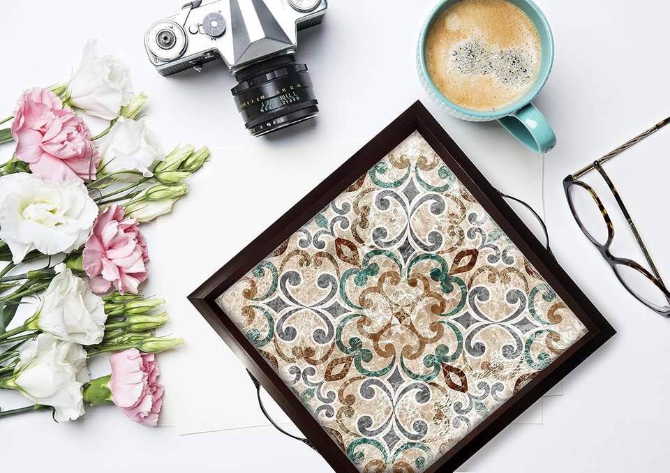 ถาดเสิร์ฟทรงสี่เหลี่ยมยอดนิยมพร้อมดีไซน์สติกเกอร์เรียบง่ายสำหรับโต๊ะอาหาร ใช้ได้ทั้งที่บ้านและที่ทำงาน เหมาะเป็นของขวัญอเนกประสงค์