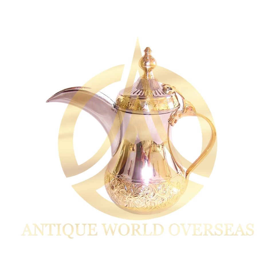หม้อกาแฟดราบาราบิกอาราบิกทำจากทองเหลืองทำมือสุดหรูเสิร์ฟชาอาหรับแบบดั้งเดิมกลางตะวันออก