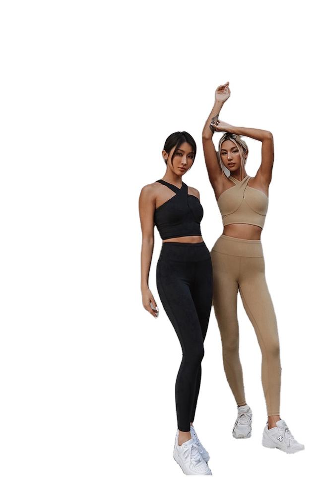 Top Selling Smart Fabric Yoga Clothes Women Shockproof Sexy Cross Sports Bra Suit Gym Fitness Set