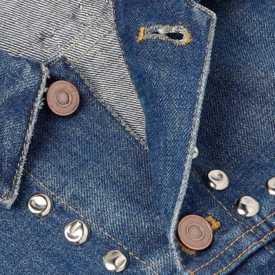 แจ็กเก็ตยีนส์กระดุมแถวเดียวสีทึบเสื้อยีนส์ประดับพลอยเทียมเสื้อแจ็กเก็ตเดนิมแบบบาง