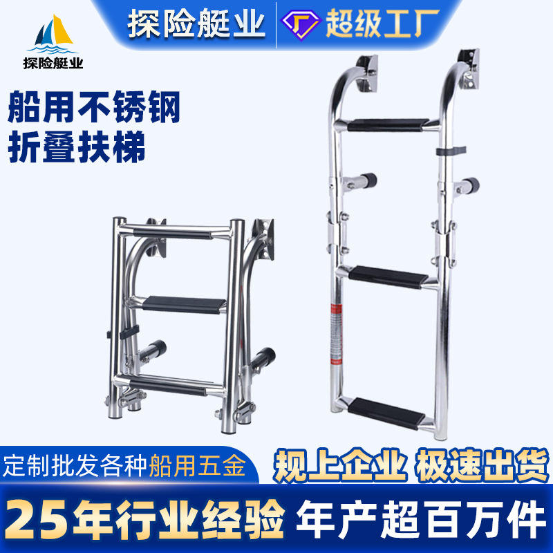 บันไดพับสแตนเลสขายดีสำหรับเรือสำรวจ เรือยอชท์ และเรืออื่นๆ สำหรับขึ้นเรือ อุปกรณ์ทางทะเลข้ามพรมแดน