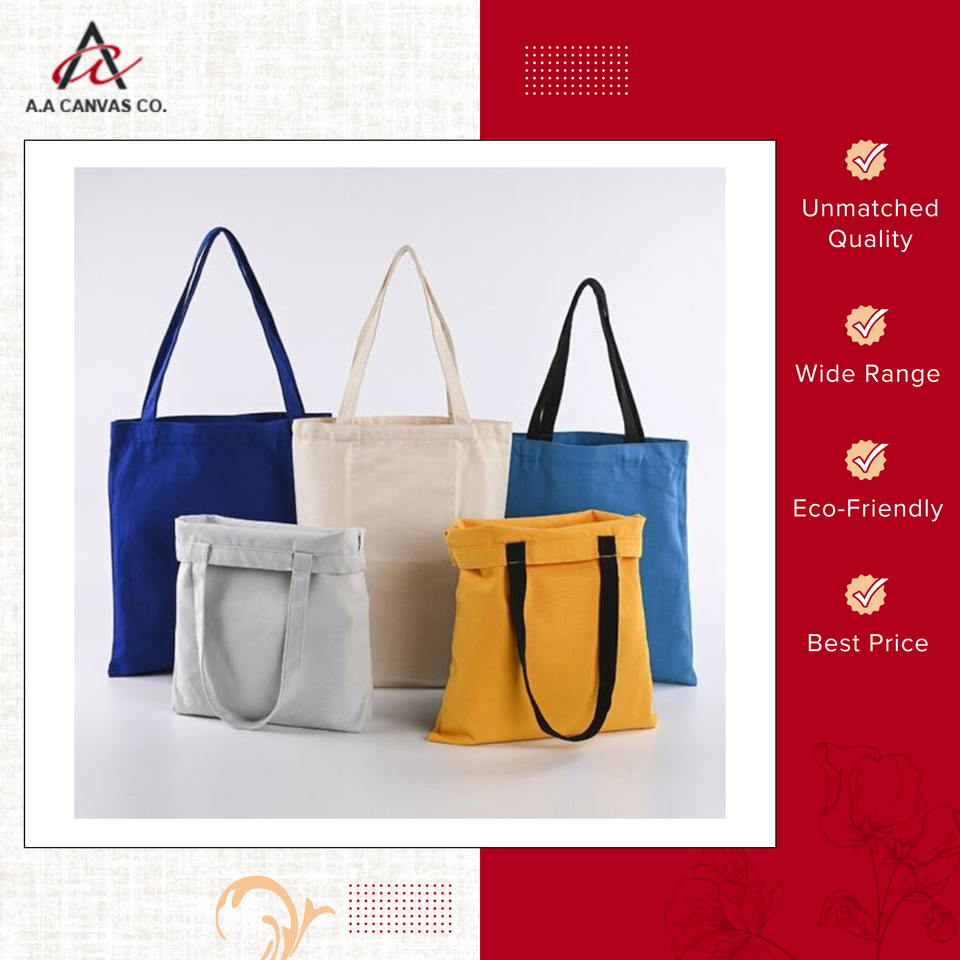ถุงผ้าแคนวาสสีล้วนทำจากผ้าฝ้ายใช้ซ้ำได้ผลิตในอินเดีย