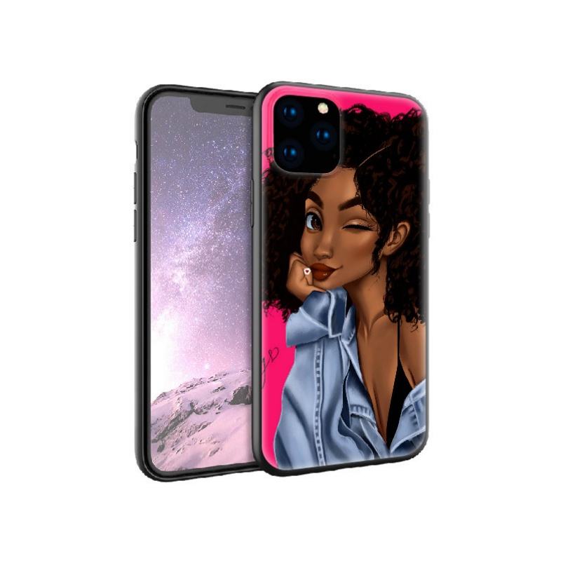 เคสโทรศัพท์สีเมลานินผู้หญิงสีดำน่ารักสำหรับ iPhone X 11 Pro 8 8PLUS