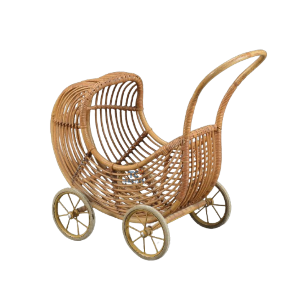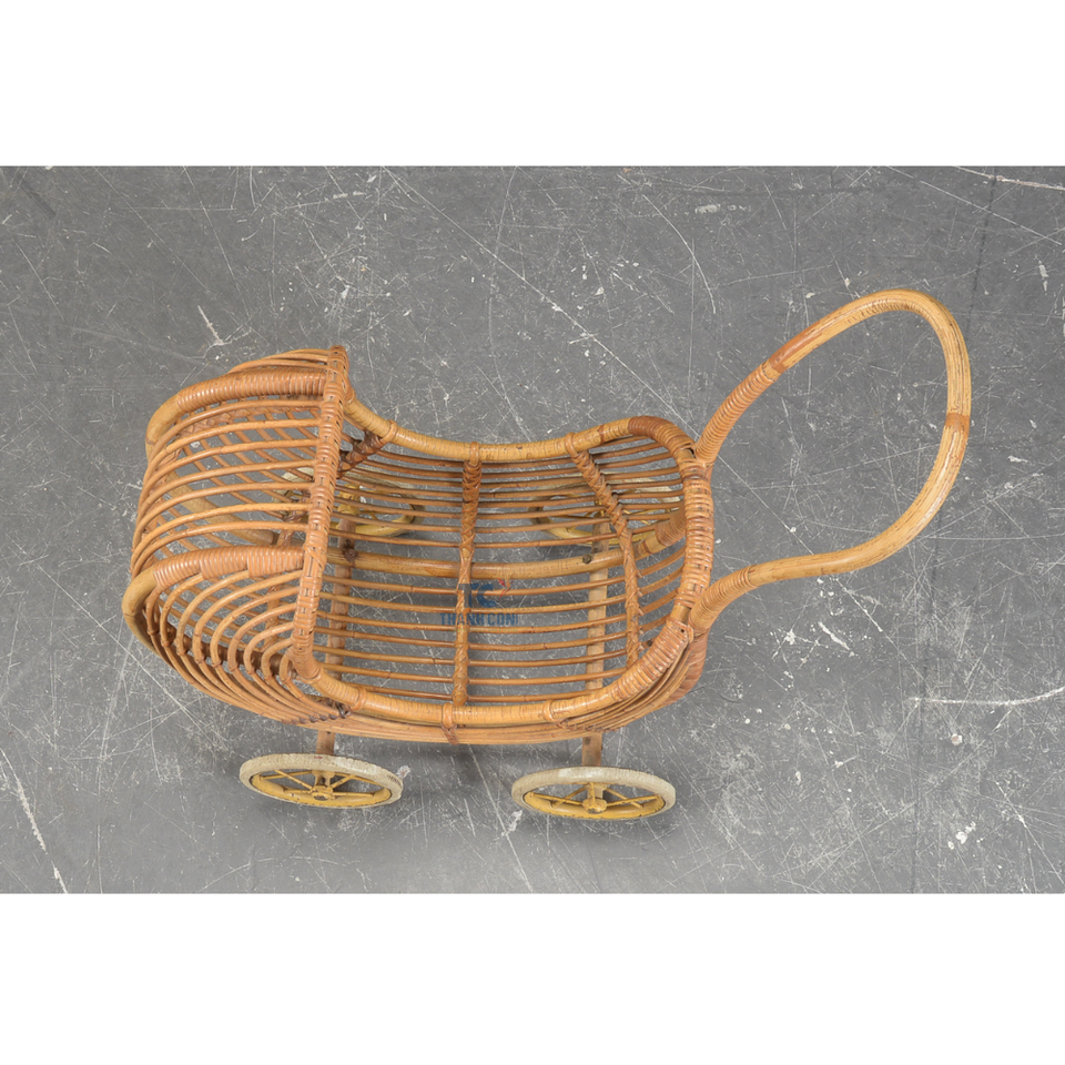 รถเข็นหวายสำหรับเด็กผู้ชายและเด็กผู้หญิงรถเข็นของเล่นเกวียนทำด้วยมือรถเข็นเด็กพร้อมล้อกลิ้ง