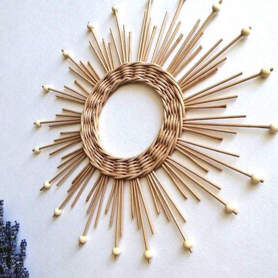 ชั้นวางของหวายติดผนังรูปดอกไม้สไตล์โบฮีเมียนแบบดั้งเดิมของตกแต่งบ้านงานสานแฮนด์เมดสินค้าจากเวียดนาม