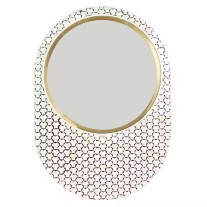 กระจกติดผนังฝังกระดูกสีขาวรูปทรงไม่ซ้ำใครทำจากไม้สำหรับบ้านด้วยงานฝีมือรูปพระจันทร์เสี้ยว
