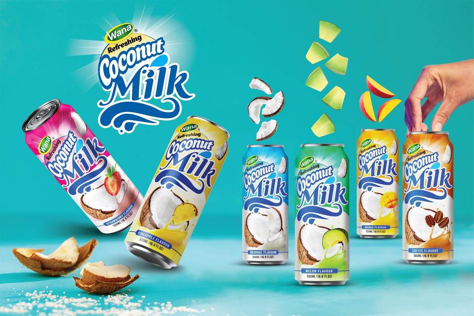 นมมะพร้าวพร้อมดื่ม ตรา WANA ขนาด 500 มล. บรรจุกระป๋องอะลูมิเนียม รสสตรอว์เบอร์รี ปลอดเชื้อ ดีต่อสุขภาพ ผลิตแบบ OEM ODM รับผลิตแบรนด์ส่วนตัว 100% จากผลไม้แท้
