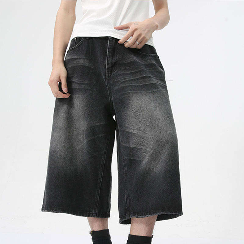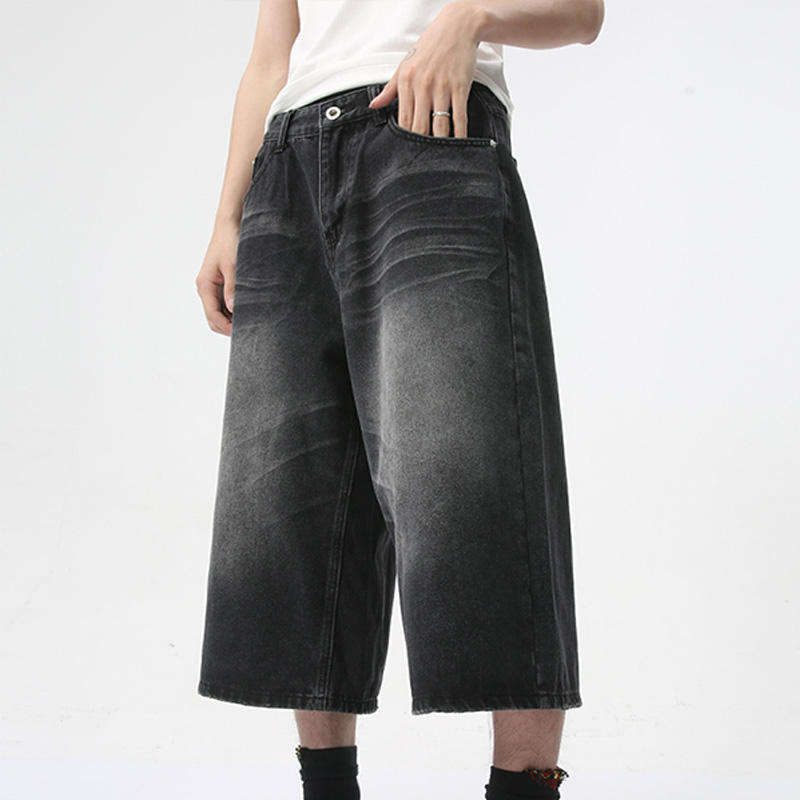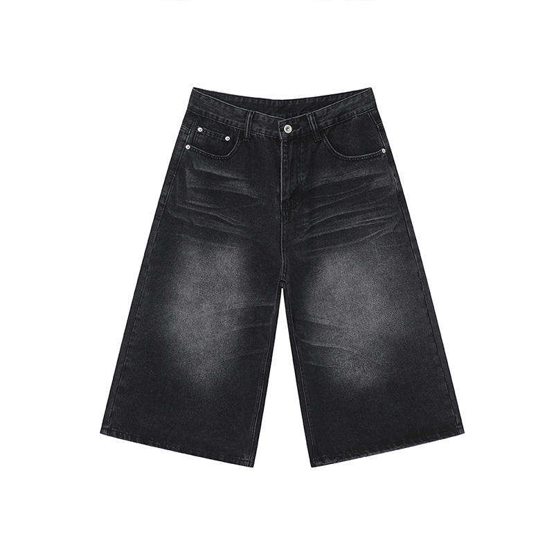 กางเกงยีนส์ขาสั้นสีดำฟอกขายดีสำหรับผู้ชาย
