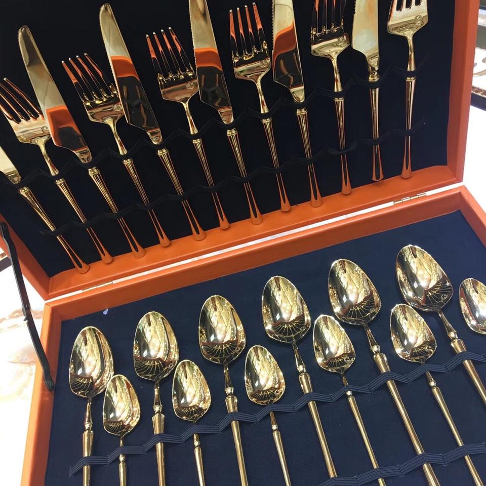 ชุดช้อนส้อมสแตนเลสชุบทองคำ 24 ชิ้น ดีไซน์ทรงลูกบาศก์ ยอดขายดีอันดับต้นๆ สำหรับงานแต่งงาน