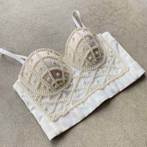 ชุดชั้นในลูกปัดสีขาวสำหรับเต้นรำเจ้าสาวชุดการแสดงบนเวทีทันสมัย