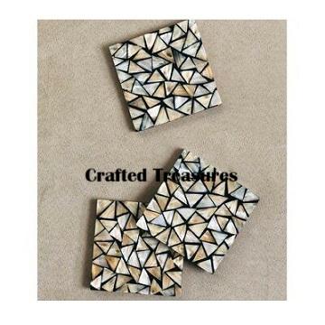 ชุดที่รองแก้วชาหินอ่อนสีขาวพร้อมสายทองเหลืองสำหรับใช้ในบ้านผลิตในอินเดีย