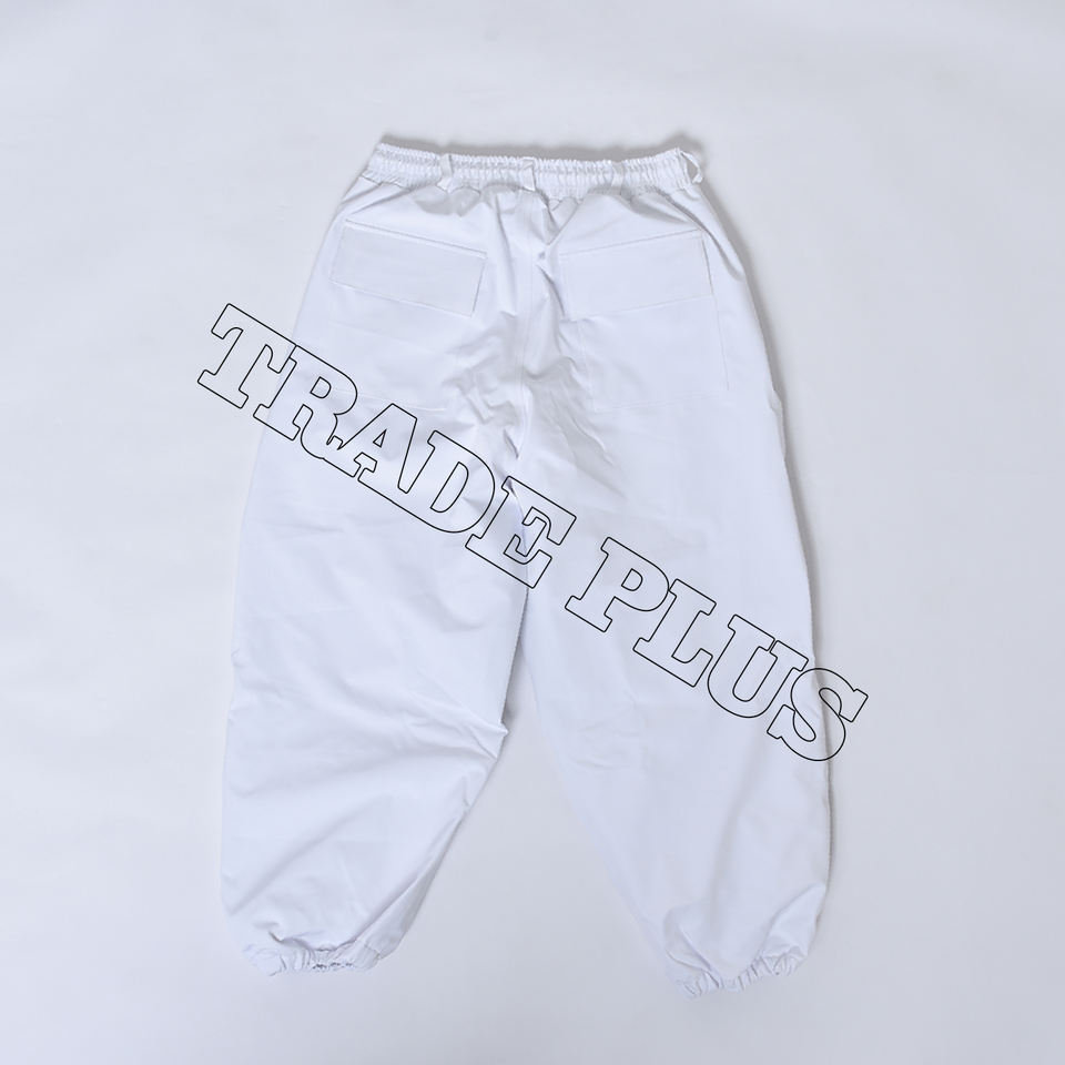 กางเกงสกีกันน้ำสีขาวมีซิปสะท้อนแสงสีเทาพร้อมเชือกรัดเอวยางยืดระบายอากาศ