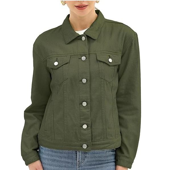 แจ็คเก็ตยีนส์ผู้หญิงขายดี แจ็คเก็ตยีนส์ลำลองสำหรับผู้หญิง เสื้อคลุมยีนส์ติดกระดุมสำหรับฤดูใบไม้ร่วง แจ็คเก็ตยีนส์ทรงโอเวอร์ไซส์ ระบายอากาศได้ดี สำหรับสุภาพสตรี