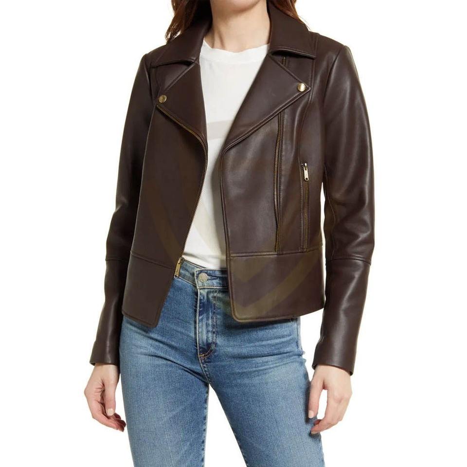 แจ็คเก็ตหนังแท้สำหรับผู้หญิงขายดีอันดับต้นๆ สำหรับฤดูหนาว มีจำหน่ายในปริมาณมากแบบกำหนดเองได้ แจ็คเก็ตหนังผู้หญิงแบบสั่งทำ