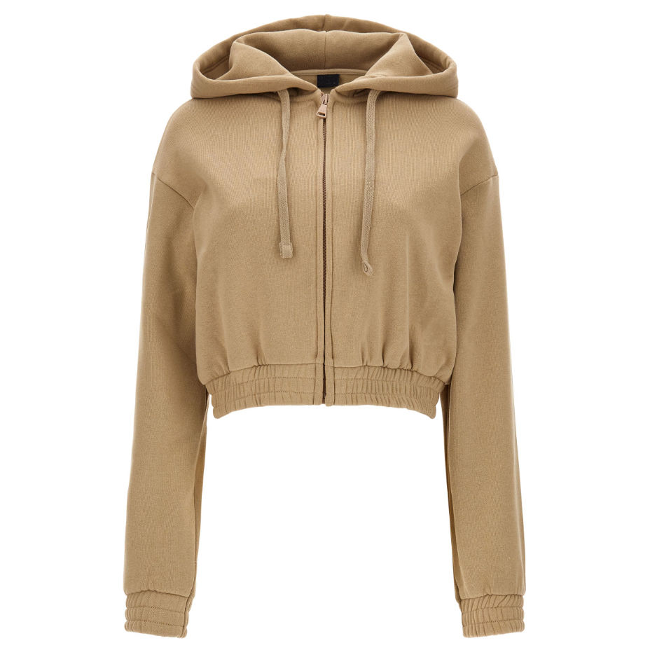 เสื้อครอปฮู้ดดี้ผ้าเทอร์รี่พิมพ์ลายสำหรับผู้หญิงขายดี ทรงโอเวอร์ไซส์ สวมใส่สบาย ผลิตจากผ้าฝ้าย 100% พร้อมกางเกงขายาวทรงจ็อกเกอร์ ชุด 2 ชิ้น