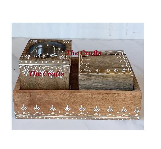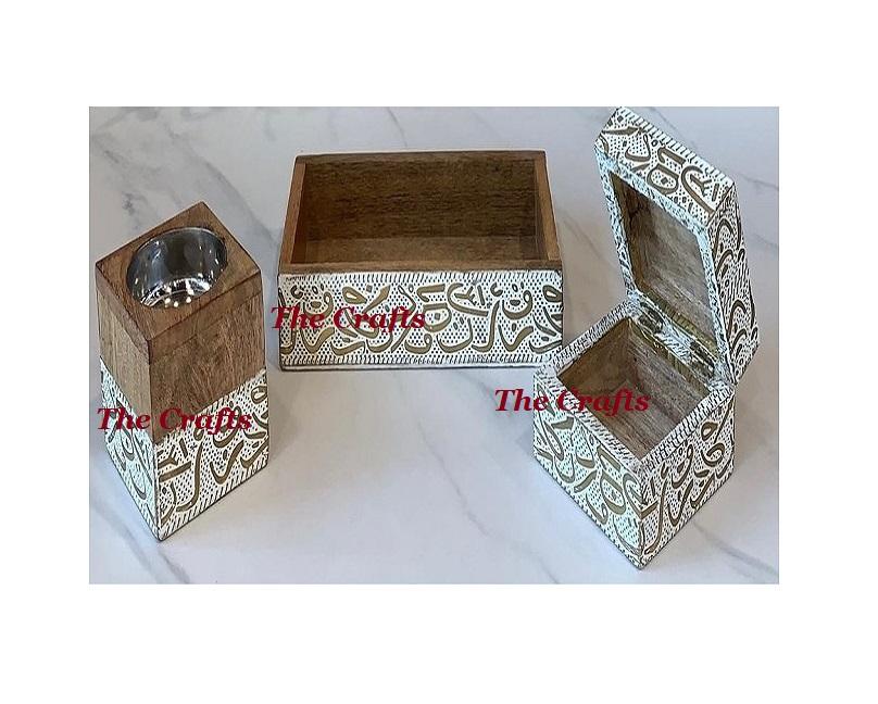 เตาเผาบาคูร์ ดีไซน์สวยงาม ทำจากไม้ พร้อมงานเขียนอักษรวิจิตร พร้อมกล่องใส่ไม้กฤษณาและถาด ขาย