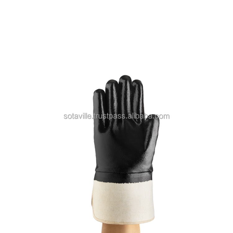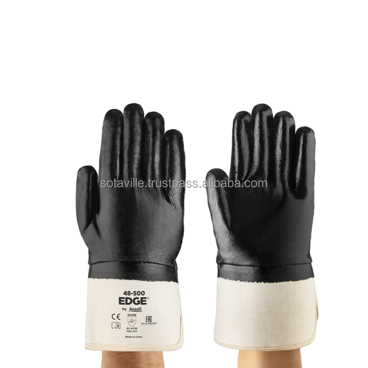 ถุงมือทำงาน Ansell 48-500 รุ่นขายดี สีดำ ทนทาน เคลือบไนไตรล์และบุด้วยผ้าฝ้าย ถุงมือเซฟตี้สำหรับงานอุตสาหกรรมที่สวมใส่สบาย
