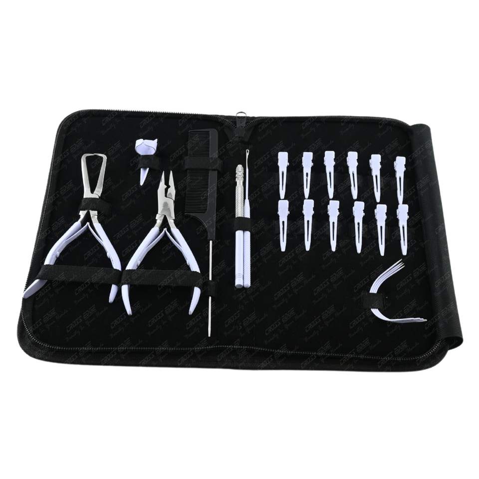 ชุดเครื่องมือต่อผมแบบไม่มีความร้อนห่วงร้อยลวดและตะขอห่วงเกลียว10ชิ้นคลิปจระเข้คีมกำจัดแหวนนาโน