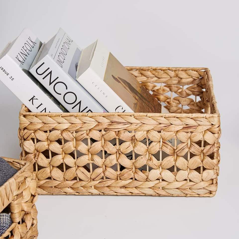 ตะกร้าหวาย3แพ็คสำหรับการจัดระเบียบ: ชุดตะกร้าเก็บของตกแต่งด้วยมือขนาดใหญ่และขนาดเล็ก