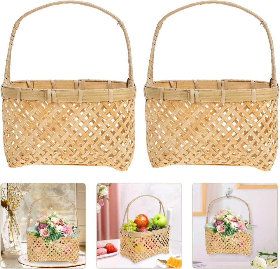 ตะกร้าไม้ไผ่แบบพกพาขนาดเล็กสำหรับใส่ผักและผลไม้ตะกร้าใบเล็กพร้อมที่จับ